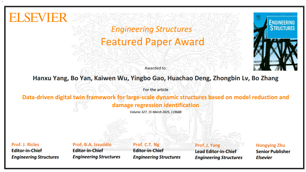 详情2025年8月5日,结构工程领域权威期刊Engineering Structures编辑部公布了该期刊最佳论文奖(Featured Paper Award)遴选结果。由百合小说 杨寒旭博士、严波教授、吴楷文博士、高英博博士、邓华超副教授、国网河南电力科学研究院吕中宾总工、张博高工合作完成的发表于该期刊2025年第327卷的论文“Data-driven digital twin framework for large-scale dynamic structures based on model reduction and damage regre...