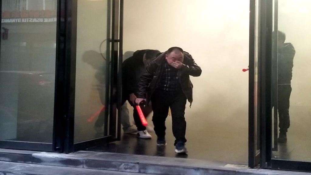 最后是讲解如遇突发火灾时的逃生知识和技巧,并现场进行了火灾逃生演练,让同学们在烟雾弥漫中,利用所学到消防知识并在指导员指导下有序疏散,安全逃离“火灾”地点。