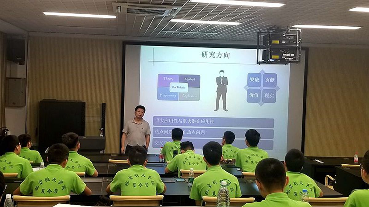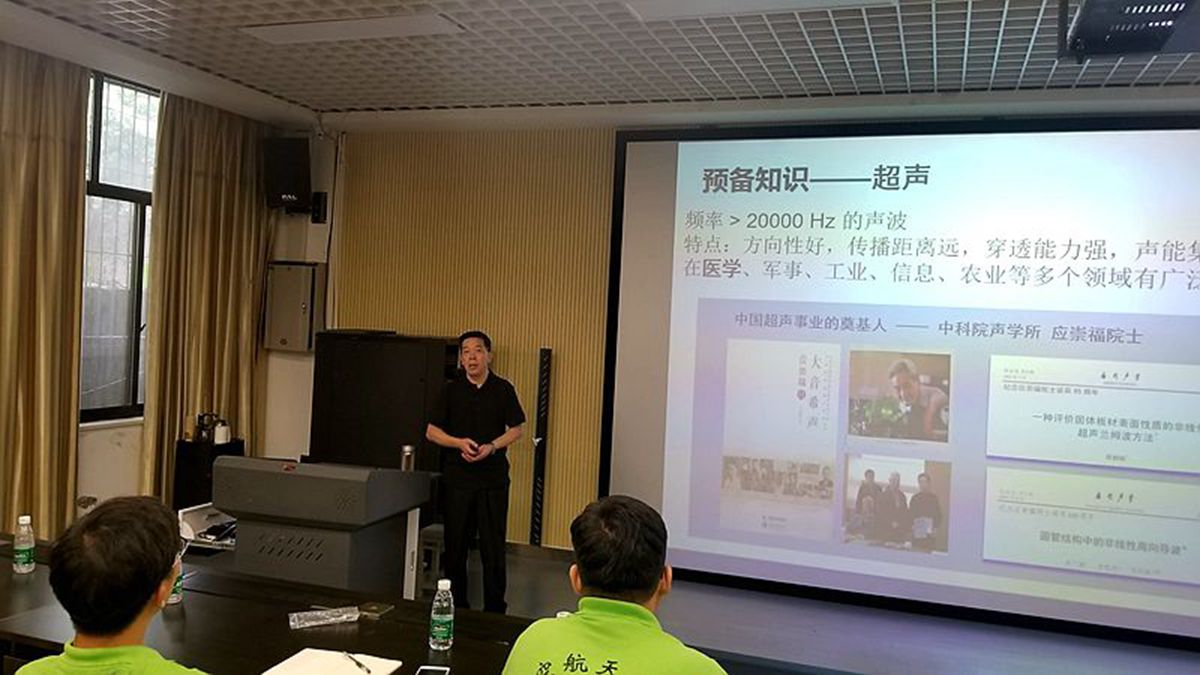 参观完实验室后,邓明晰教授、李卫国教授、曾忠教授和张元勋副教授分别作了学术报告,为大家带来了一场场学术盛宴:邓明晰教授结合材料/结构早期损伤的非线性超声导波评价原理和方法畅谈了自己的研究经历和心得,李卫国教授结合他近年承担的各项国家级课题,为大家梳理了高温力学领域的研究进展;曾忠教授通过对流体力学重点热点问题的探讨,重点介绍了课题组在微重力流体物理领域的研究情况;张元勋副教授则以生动的案例为大家呈现了“嫦娥四号”生物科普载荷的研究历程。各位老师的精彩报告让同学们领略了学院不同方向的研究成果,大家不时提问,现场气氛热烈。6日晚,各位营员还参加了专业基础笔试。