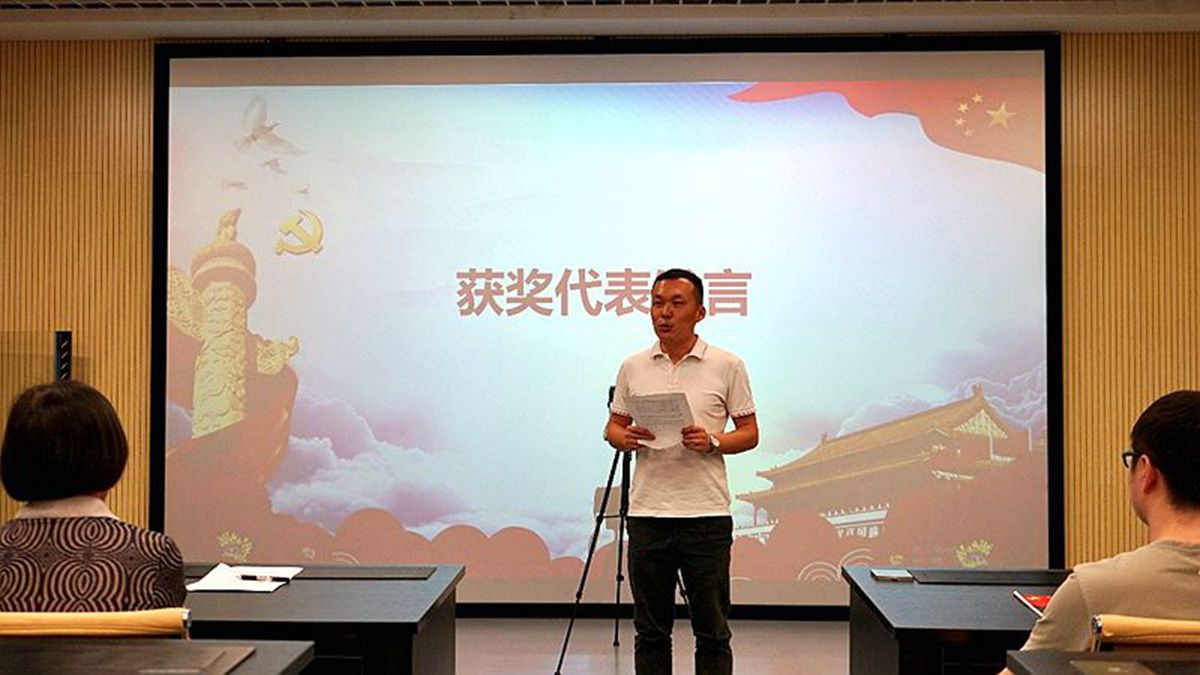 本科支部书记陈勇凡发言,他表示先进支部这个荣誉是对支部工作的鞭策,本科支部将充分发挥支部党员的主观能动性,创新工作形式,积极开展各项活动,让支部成员们参与其中,乐在其中。最后他对学院表示感谢,希望院党委、院领导和各位老师、同志们多指导、多批评,帮助他们继续改进与提高。
