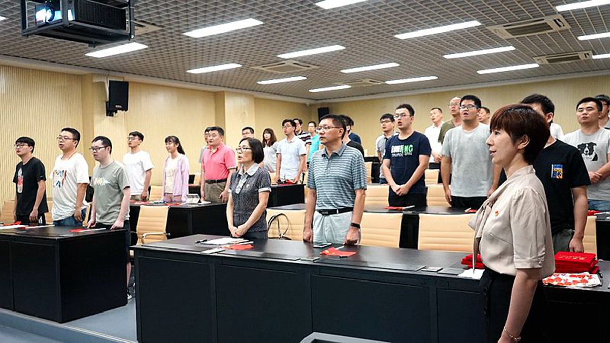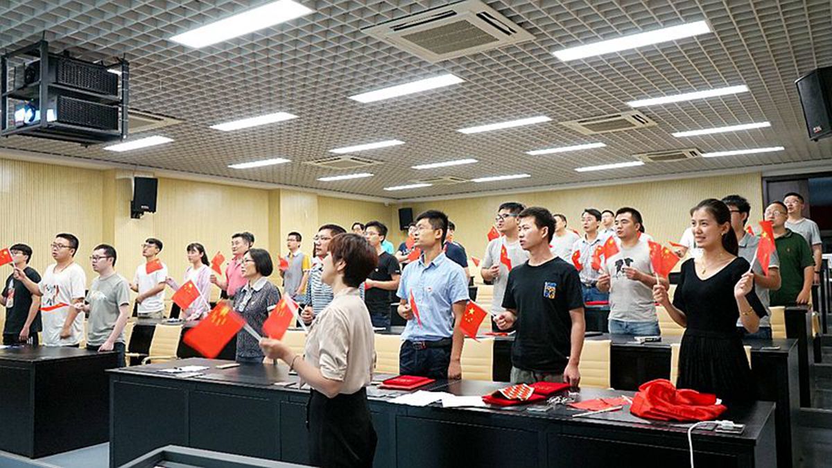 最后,全体与会成员手举国旗,齐声高唱《我和我的祖国》,共同庆祝建党98周年,一起用歌声表达对祖国的祝福,祝愿祖国繁荣昌盛,国泰民安。