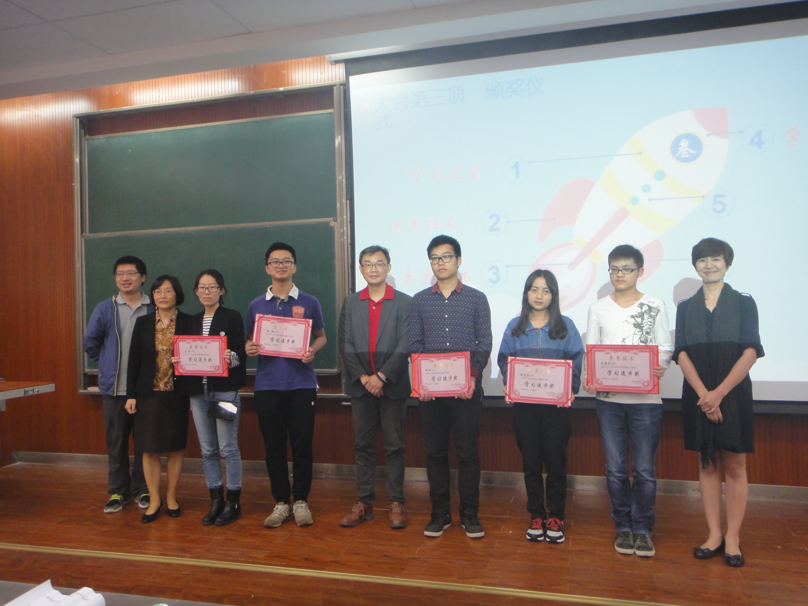 在过去的一年中航空学院在各位师生的共同努力下,在学风建设方面获得了很大的成绩。在比、学、赶、帮、超的学习氛围中涌现了一大批先进个人和集体。树立先进典型,激励很多同学奋发向上。本次表彰共设立了“空天之星”、“优良学风班”、“优秀班长”、“优秀团支书”、“学习进步奖”、“体育活动先进个人”、“文娱活动先进个人”、“洁优雅寝室”等八个奖项。