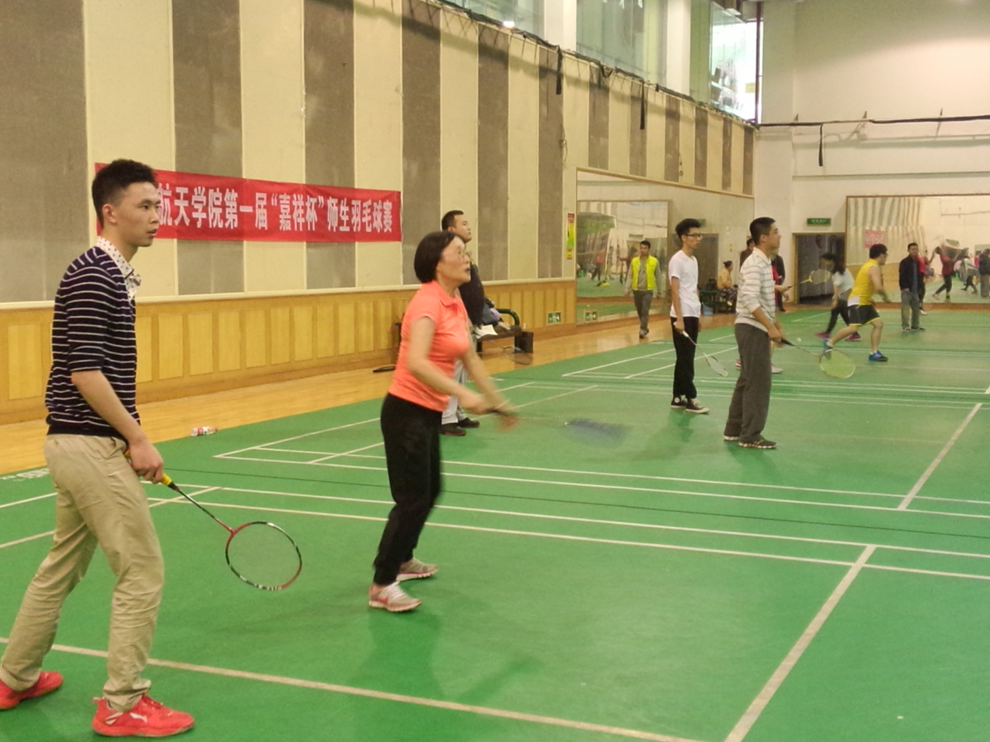 研究生学生会组织的师生羽毛球交流决赛在体育馆举行。本次羽毛球交流赛不仅起到了促进羽毛球运动在航院内发展的作用,同时也加强了师生间的交流,让老师在课下成为学生的朋友。