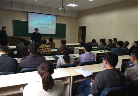 在7201教室召开综合治理会议。学院党政领导班子及全体教职工出席会议,会议由学院党委书记万玲主持。