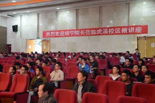 报告之后的提问阶段,同学们发问很积极,胡宁也非常诚恳的回答了同学们所提出的问题和疑惑,诸如国内航空航天的发展情况以及自己如何才能适应国家需要等。“长达两个半小时的报告,一点儿也不累,胡宁院长的报告太走心了,他是真的用心在交谈”,听完报告的一个同学说。最后,胡宁用黑格尔的一句话圆满结束了今天报告的所有内容:没有几个人仰望星空的民族,是没有希望的民族。