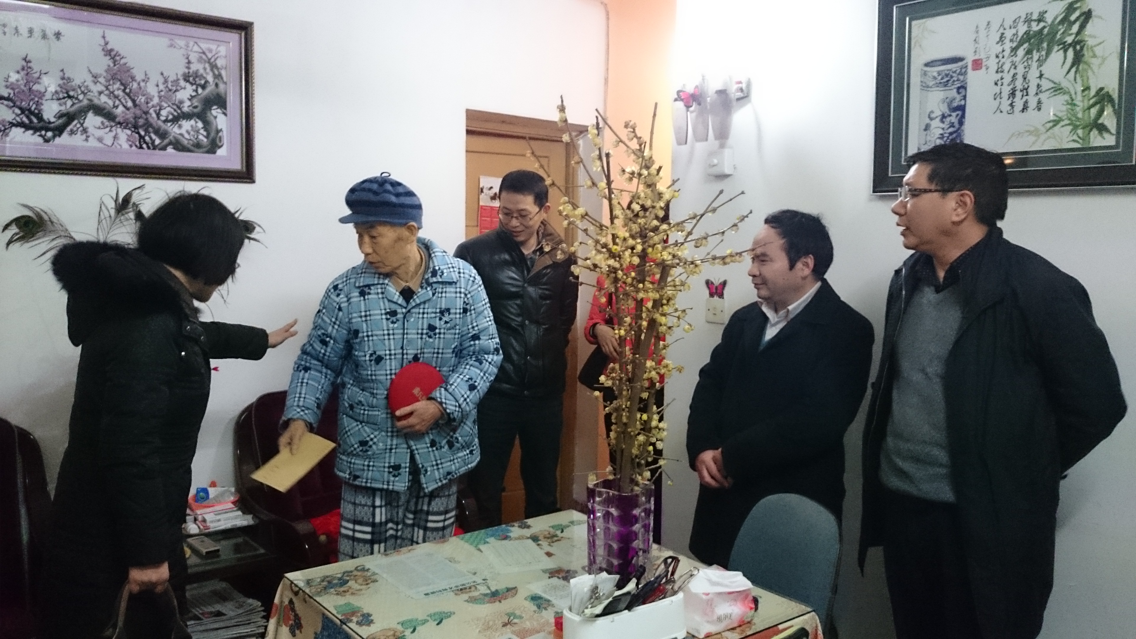党政工领导班子在新春佳节即将到来之际,走访慰问学院80岁以上的六位离退休教职工,并送上油、米等生活用品和校工会下发的慰问金,为他们送去新春的祝福和节日的问候。