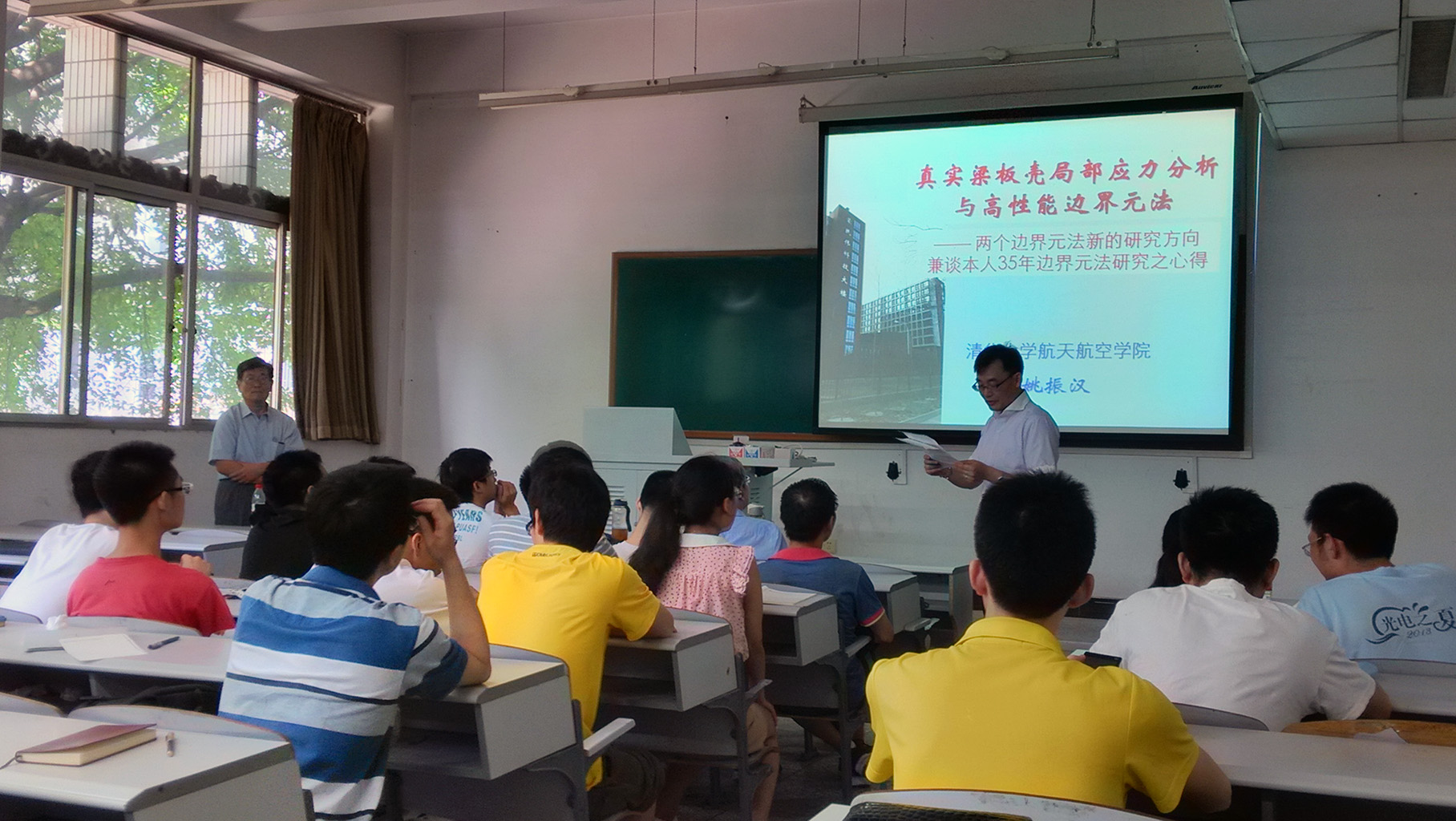 姚振汉教授做了关于真实梁板壳局部应力分析的高性能边界元法的报告。姚教授介绍边界元法的精度验证和一种高精度边界元法计算方案,并针对相应薄板梁弯曲问题进行了三维边界元分析。姚教授还特别介绍了自己从事边界元方法35年以来的心得,特别是在数值计算中对于离散误差分析的重要性等都是非常难得的经验之谈。