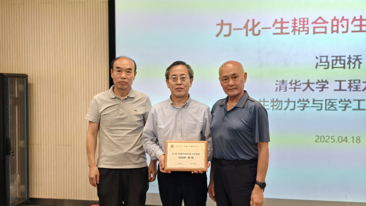 活动最后,彭向和教授和刘占芳教授代表工程学部向冯西桥教授赠送了工程科学前沿论坛纪念牌。此次讲座不仅拓宽了师生们在生物力学领域的学术视野,更为大家提供了与业内顶尖学者学习交流的机会,也为大家在相关研究方向上提供了新思路与新启发。