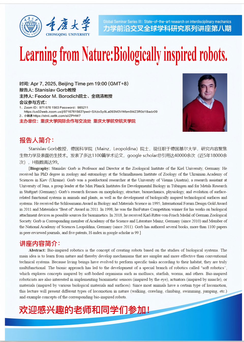 【10月10日】智能结构材料与动力学:新力学理论及其应用