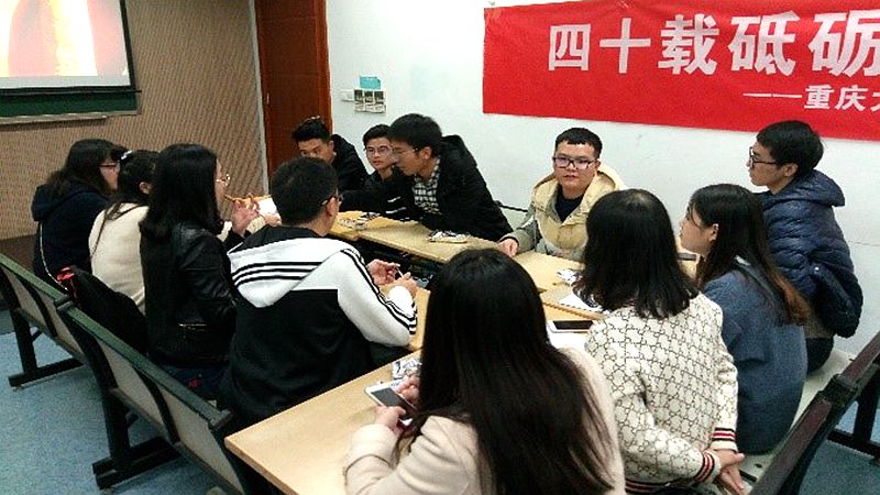 首先,同学们进行了一个小小的暖场活动。主持人按照随机分组的原则将来自三个学院的同学们分成了六个小组,要求各位同学在五分钟内记住小组内同学的名字并随机请同学进行说出组内同学姓名,同学们的表现相当积极。