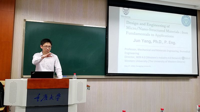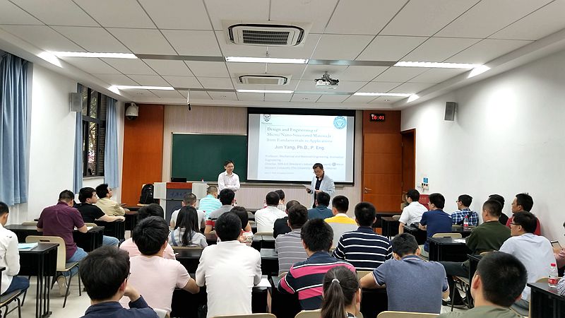2018528日下午,应百合小说 邀请,加拿大工程院院士、西安大略大学杨军教授到访百合小说 ,并在8110教室作了题为《Design and Engineering of Micro/Nano-Structured Materials, Surfaces and Devices: from Fundamentals to Applications》的报告。报告由百合小说 胡宁教授主持,学院师生60余人出席听讲。