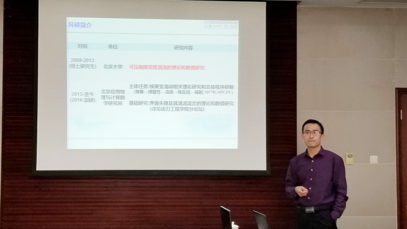 北京应用物理与计算数学研究所的张又升博士介绍了《可压缩规范壁湍流的理论和数值模拟研究》。张博士在利用超级计算机对可压缩规范壁湍流问题展开大规模直接数值模拟基础上,推出了可压缩壁湍流的“速度场—温度场”普适关系,解耦了可压缩壁湍流速度场和温度场的耦合,进而探清了其马赫数、壁面温度、雷诺数三个维度的效应。在上述工作的基础上,完成了可压缩平板湍流边界层统计平均剖面的预测。其工作对于航空航天飞行器设计具有基础指导意义。