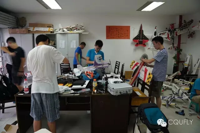图3 2016年7月队员顶着酷暑在航模活动室里组装飞机