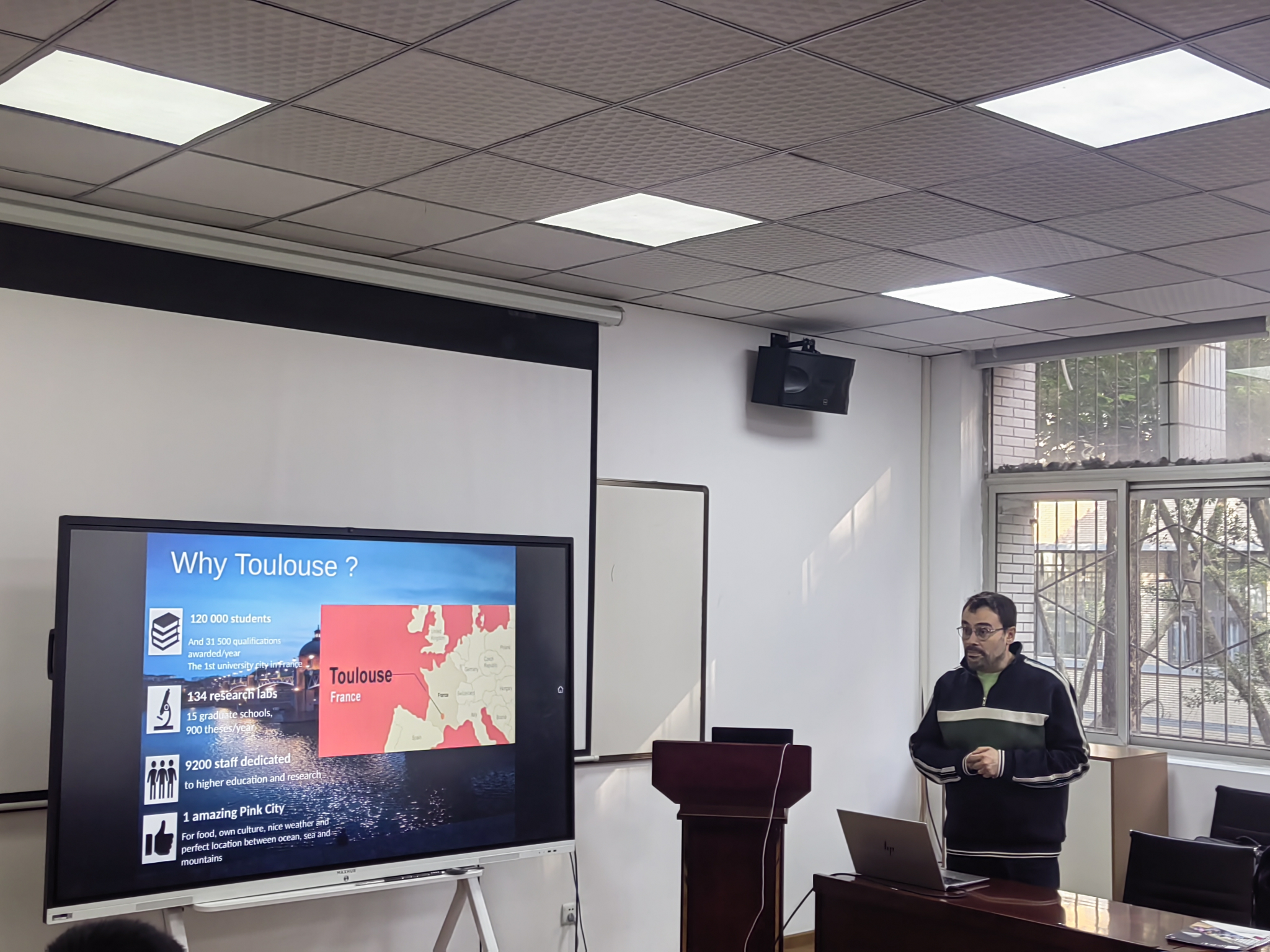 随后,Adam QUOTB介绍了图卢兹国立综合理工学院的整体概况、学科特色以及硕士与联合培养项目,并回顾了今年两校签署谅解备忘录的合作进展。他表示,对两校未来的合作前景充满期待。