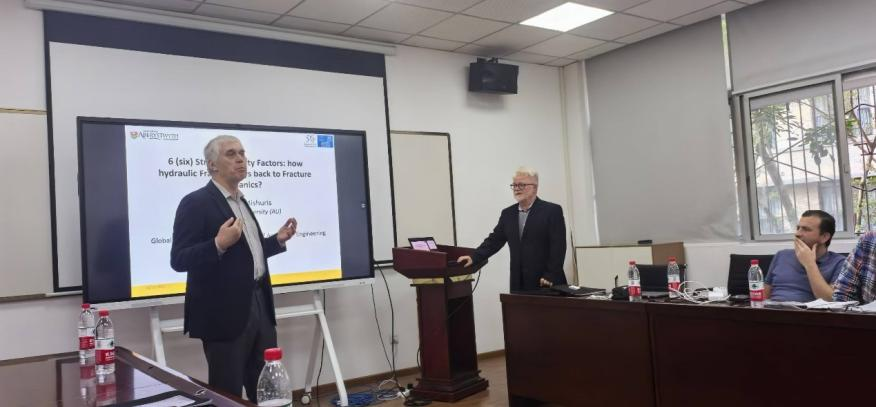 Mishuris院士在报告中回顾了其团队过去十年间在水力压裂数学建模方面的突破性研究,推动了完整线性弹性断裂力学(LEFM)理论的形成,解决了开口裂纹和硬夹杂物情况下应力强度因子模糊性的问题,并拓展了经典欧文裂纹闭合积分的应用,推动了水力压裂模型的数学与数值建模发展。