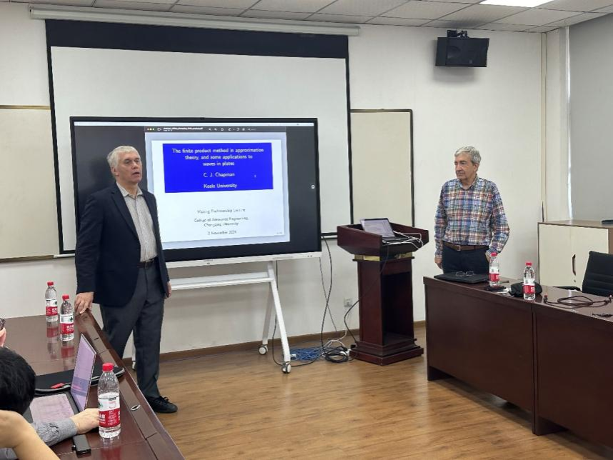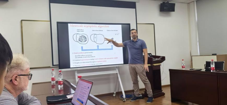 报告伊始,Feodor Borodich教授对讲座嘉宾的学术背景进行了简要介绍。Gennady Mishuris教授是英国威尔士学术院院士、德国洪堡学者、欧盟玛丽·居里学者、利华休姆研究员,并荣获波兰最高学术称号“贝尔维德尔教授”,及英国皇家学会沃尔夫森研究卓越奖等多项殊荣。Christopher John Chapman教授是英国皇家学会《Proceedings of the Royal Society A》期刊主编,同时也是剑桥大学基督学院会士,并曾在劳斯莱斯公司、NASA和英国核电等世界知名企业和机构任职。Michael Nieves入选了欧盟玛丽·居里学者,研究领域涵盖奇异摄动、波传播建模及维纳-霍夫技术应用,且是“中尺度渐近近似方法”的先驱。