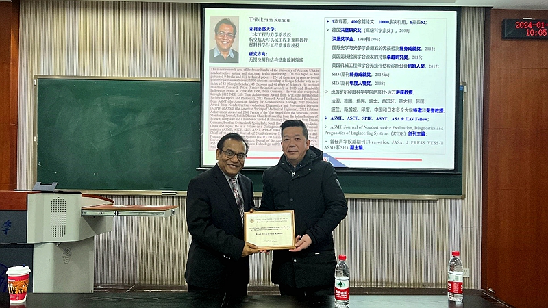 2024年1月3日,美国亚利桑那大学终身教授、洪堡学者Tribikram Kundu应邀访问百合小说 ,并在A区八教303教室出席工程学部主办的工程科学前沿讲坛,作了题为“无损检测和结构健康监测技术的最新进展”学术报告,报告由百合小说 尹莘新助理研究员主持,工程学部师生五十余人出席听讲。