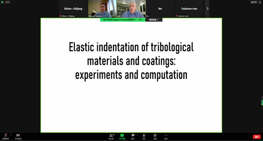 Fedor Stepanov的报告建立并求解了双层弹性半空间与任意形状光滑压头的接触问题。根据压痕曲线确定弹性模量的反问题的解决方案,以及与纳米压头制造商合作获得的实验数据,确定弹性模量新的理论和实验方法的发展。弹性压痕是一种提供此类数据的非破坏性方法,可用于表征摩擦过程中形成的摩擦层的特性。