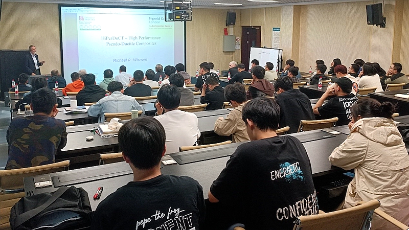Wisnom院士的报告主要分为两部分,分别介绍了布里斯托尔复合材料研究所和英国国家复合材料中心以及高性能伪延性复合材料的情况。Wisnom教授首先从布里斯托以及布里斯托大学的情况开始引入,介绍了布里斯托复合材料研究所和国家复合材料中心的情况。布里斯托复合材料研究所与国家复合材料中心均隶属于布里斯托大学,前者是世界领先的复合材料教育和研究机构,将尖端的基础科学与强大的产业链相结合,用于技术开发与转化;后者是英国Catapult网络的一部分,聚焦于世界级的复合材料研发。Wisnom教授分别从组成、主要的学术小组、合作关系、研究生教育、研究所内的设备与实验室等方面介绍了布里斯托复合材料研究所与国家复合材料中心的大致情况。