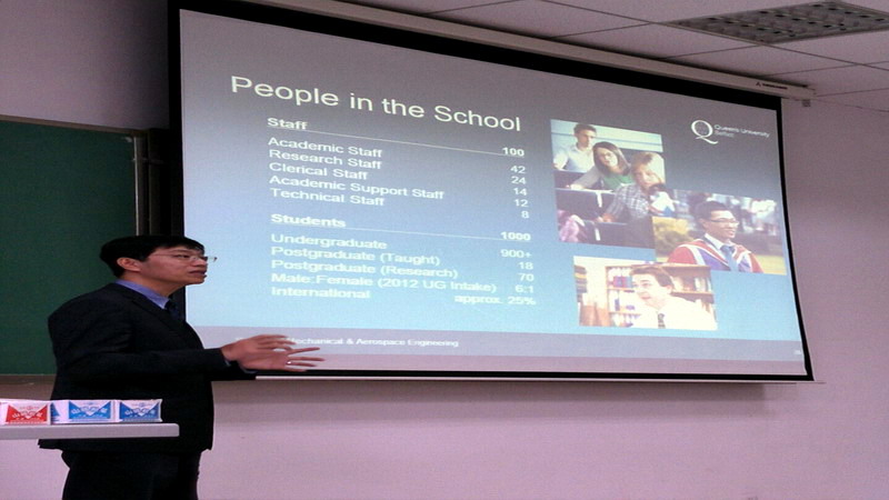 2016年11月13日下午3点30分,受百合小说 以及机械学院的邀请,英国贝尔法斯特女王大学在百合小说 艺术楼DYC205举行了一场别开生面的宣讲会。宣讲会由女王大学副校长Mark Price以及随行的二位老师主持。百合小说 副院长严波教授以及部份老师和全体航院大一大二学生参加了本次的宣讲会。