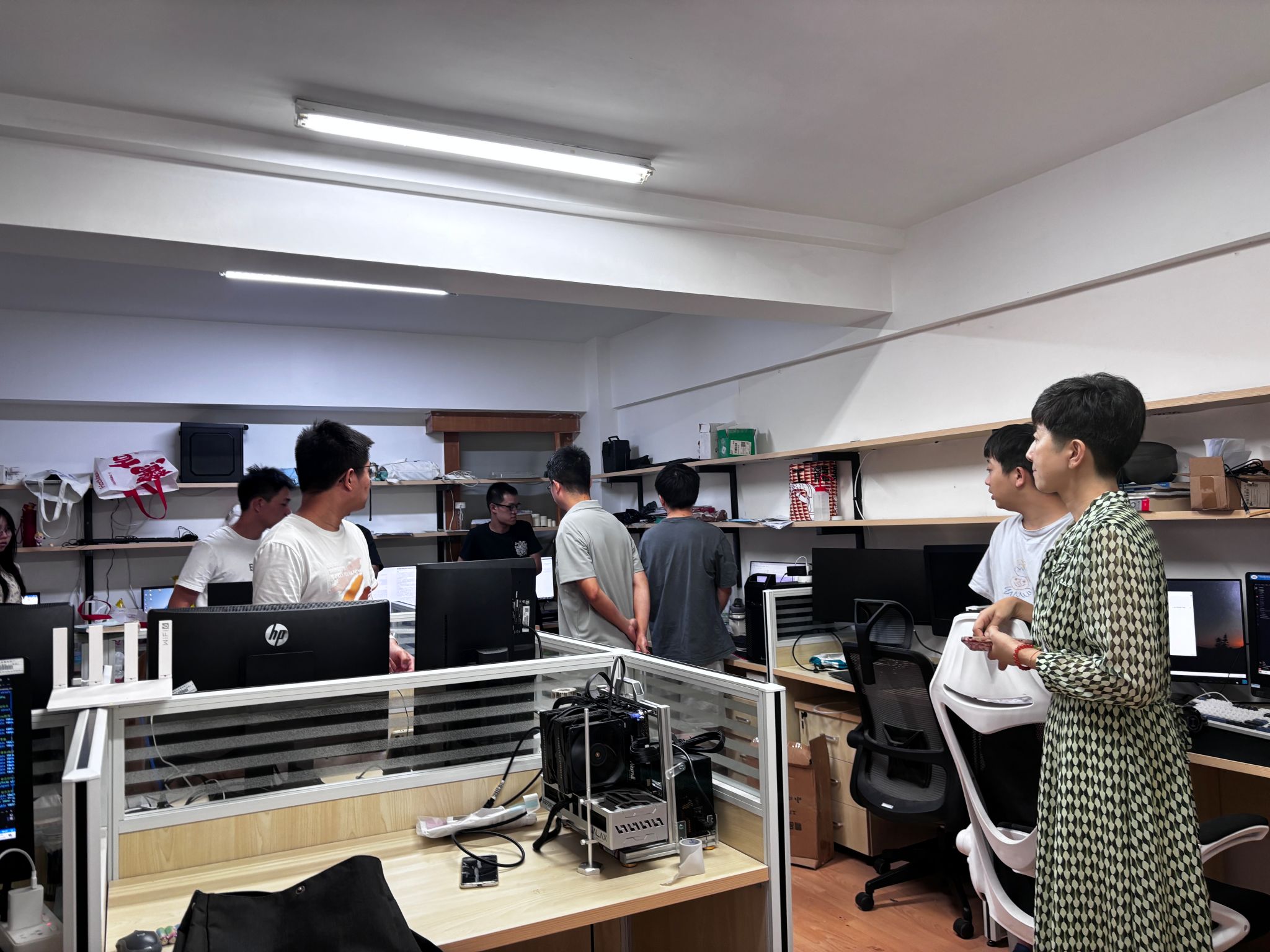 此次安全检查涉及到各科研教学实验室、教师、研究生及行政办公用房,重点排查了实验室气瓶、危险化学品、加热及特种设备的安全状况以及办公用房用电、消防、卫生等可能存在的安全隐患。程乐强调了暑假办公用房安全的重要性,要求研究生办公用房定期进行环境整顿,每日最后离开的人员须关好水、电、窗、门。对于发现隐患较多的办公用房提出了整改意见,并安排了复查工作。同时,针对插座数量不够导致的插线板串联使用问题,将由学院统一安排电工进行线路改造。