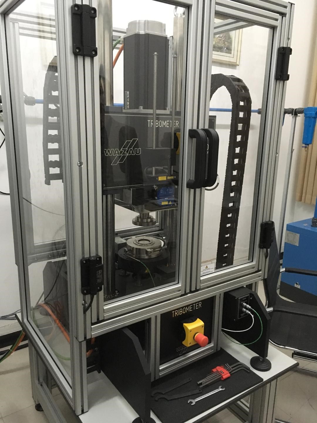 该实验室拥有德国进口摩擦磨损试验机,通过销盘、球盘、盘环等接触模式,实现振动、旋转及旋振组合等运动,转速可达3000 rpm,载荷范围:5—1000N(精度0.25%),摩擦力矩:0—5 N(精度0.1%)。